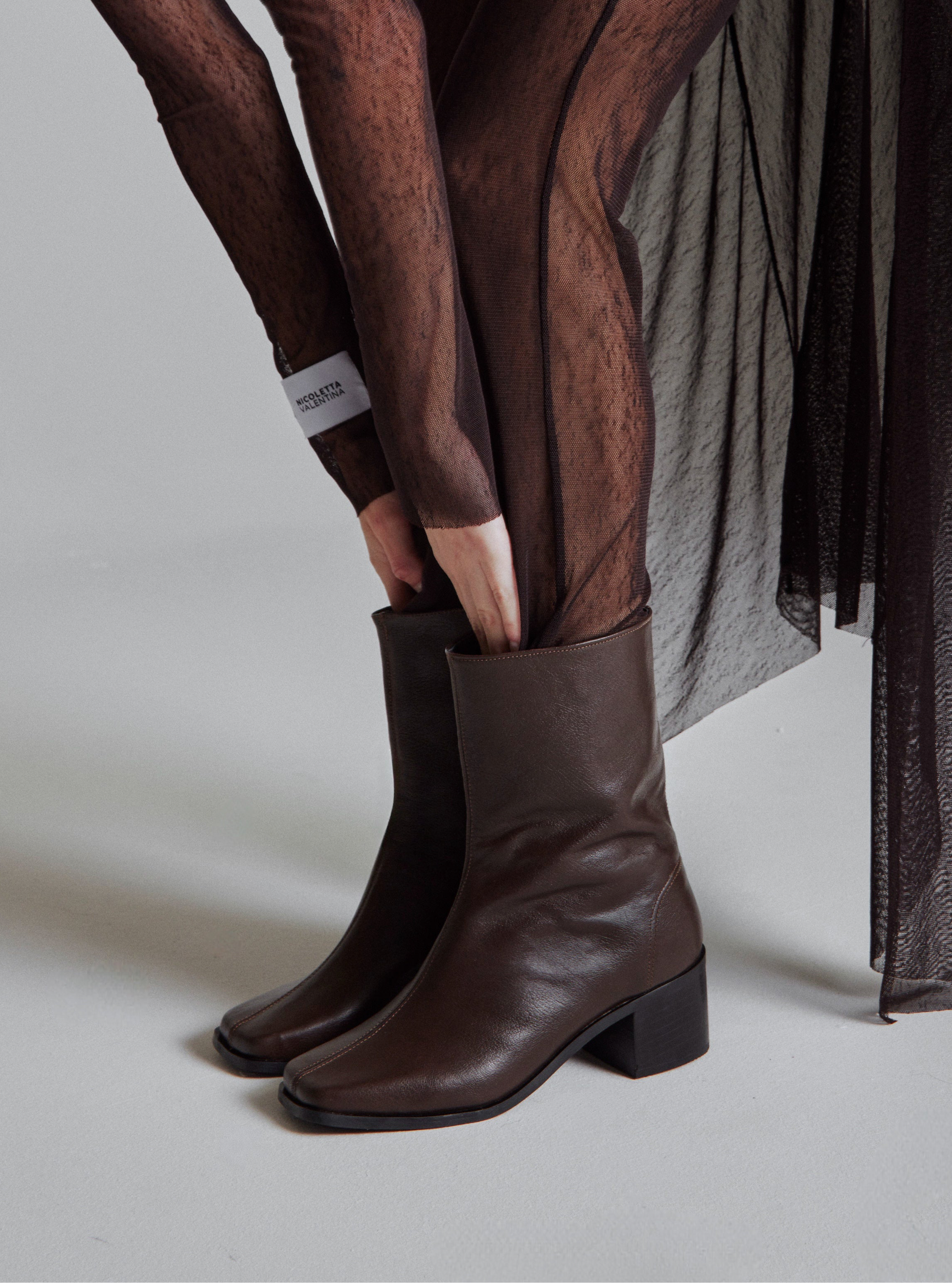 El café chocolate es el color de la temporada, y VICENTA lo lleva con total elegancia. Esta bota, con punta cuadrada y doble costura, aporta una distinción sutil que resalta en cada detalle. El taco negro contrasta perfectamente con el tono cálido del cuero, creando un equilibrio entre la modernidad y la tradición. Con una estética versátil, es ideal para quienes buscan una bota que combine con todo, pero que no pierda ese toque único y sofisticado.